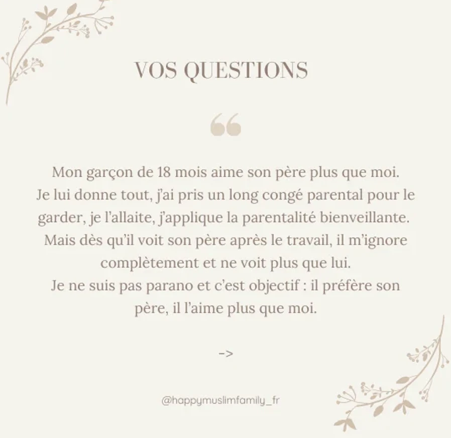 Je ne suis pas parano et c’est objectif : il préfère son papa, il l’aime plus que moi.