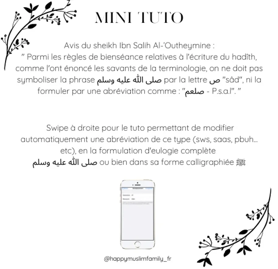 Nous avons partagé récemment un petit tutoriel sur notre compte Instagram indiquant pourquoi et comment remplacer automatiquement les abréviations (sws, S, ص, pbuh… etc), en la formulation d’eulogie complète.